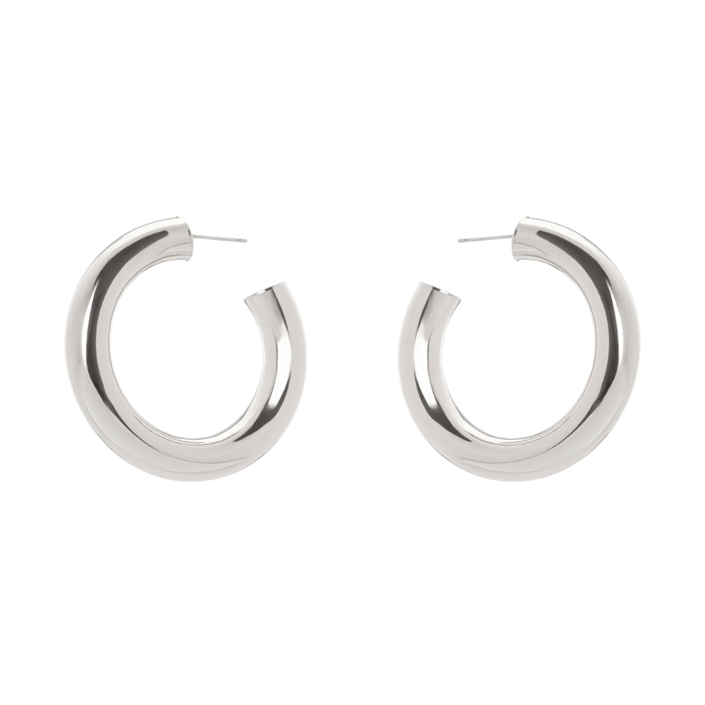 Questi seducenti orecchini sono un impareggiabile tocco finale per qualsiasi look. Design stiloso con splendente grande cerchio dalle linee fluide e radiose che con i loro riflessi ti impreziosiscono il viso. Una coppia di accessori di classe, in versione dalle sontuose cromie del rodio. Logo Sodini sul retro.